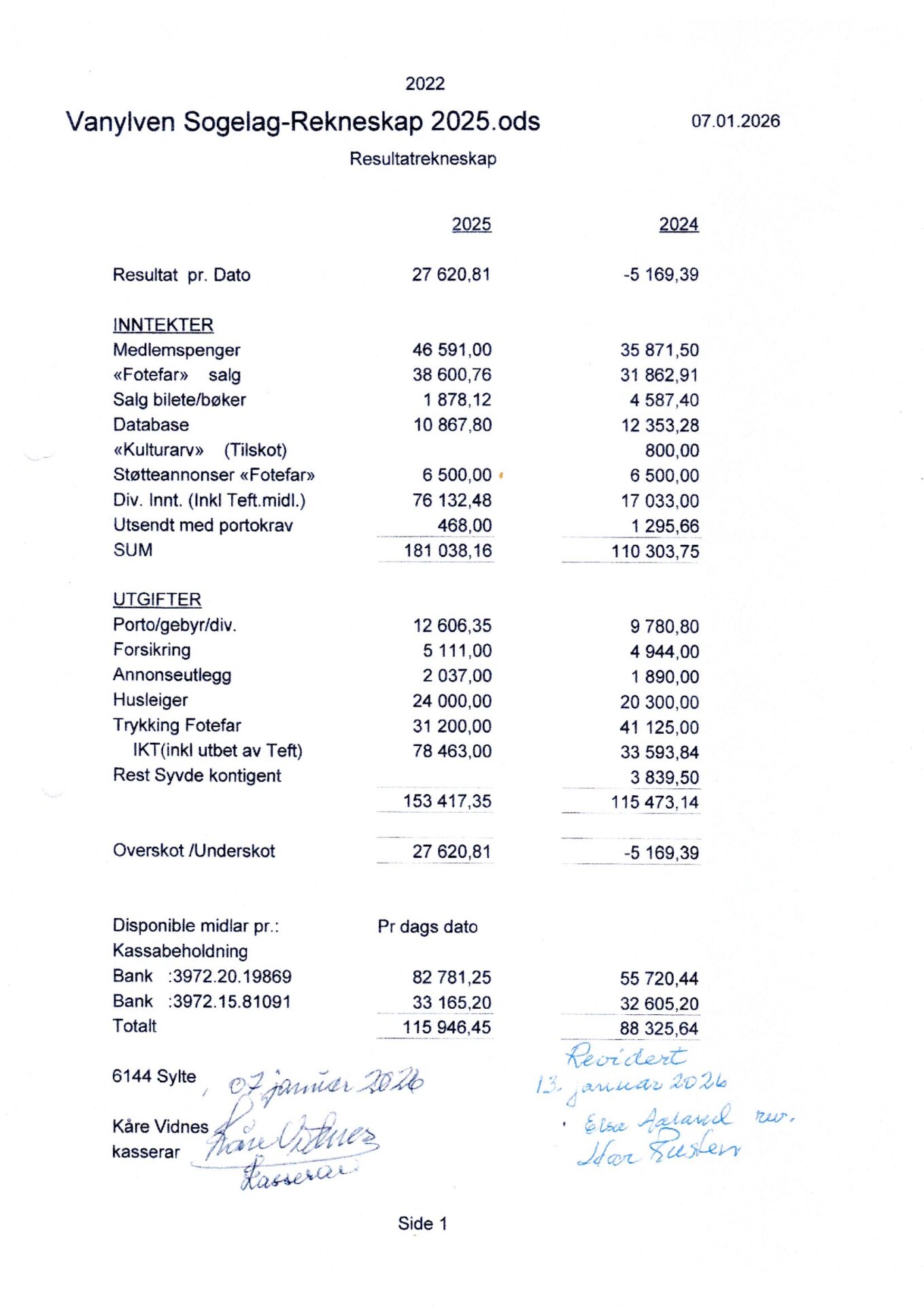Revisorar dette året har vore Idar Rusten og Elsa Åland.