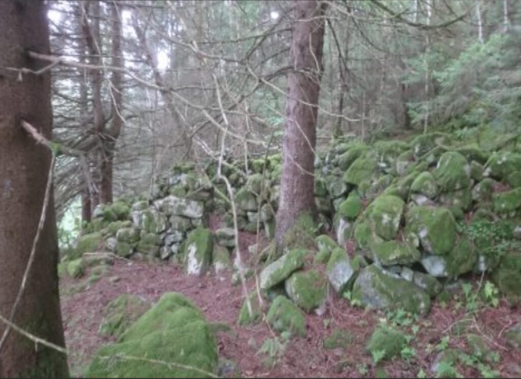| Beskriving | Mur i steingard. Byggemåten verkar gammal, enkel mur. To rom eller fjøs med kve |