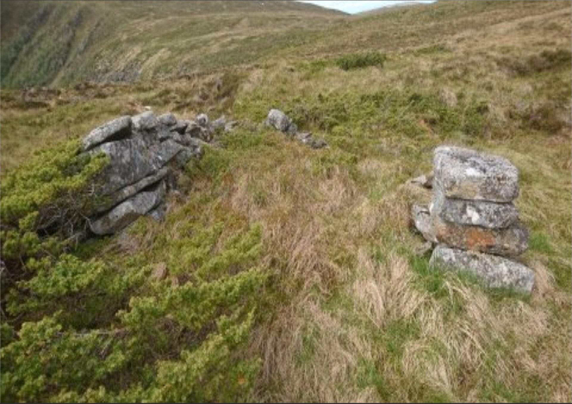 | Beskriving | Murrestar, nedgrodd inne. Kanskje torvtak som har falle ned. Ligg nær stien. |