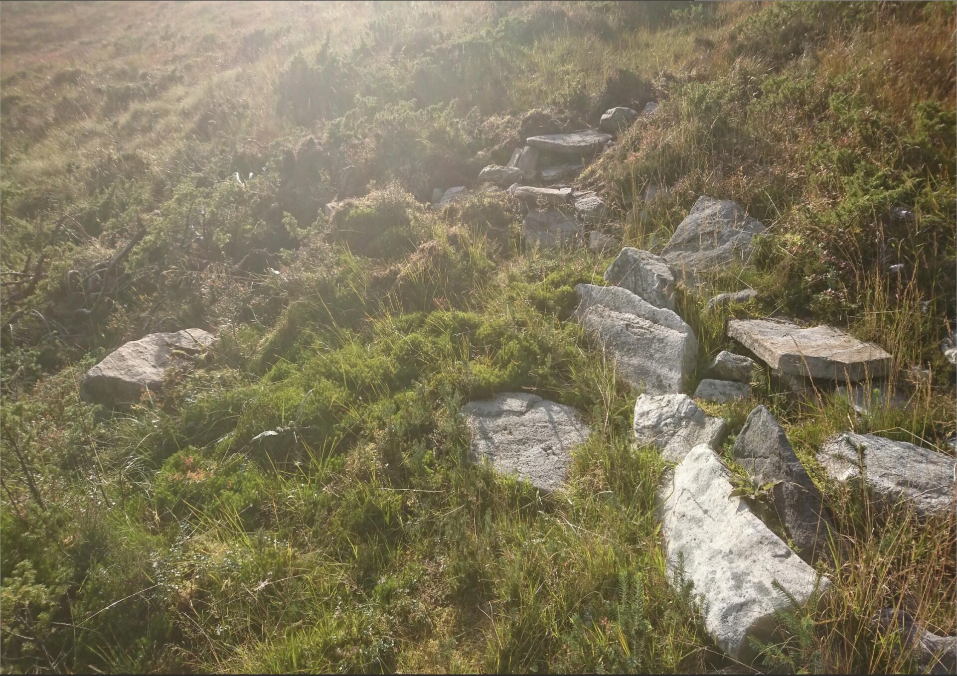 BeskrivingFjøs med siderom. Torv til vaktarbua/selet? som ligg 20m unna, mykje mold og mose inni muren, nedfalle torvtak?