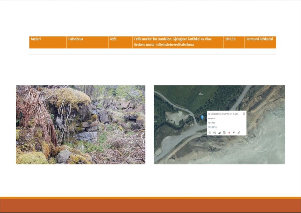 | Beskriving | Halsebrua. 69/lFellesmeieri for Sundalen. Gjengjeve i artikkel av Olav Kroken, murar i olivinstein ved Halsebrua. |
