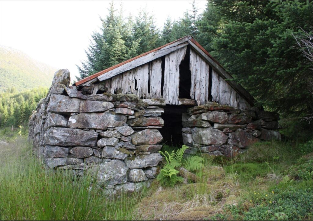 BeskrivingFjøsen ligg opp om vegen i Bergenakken.