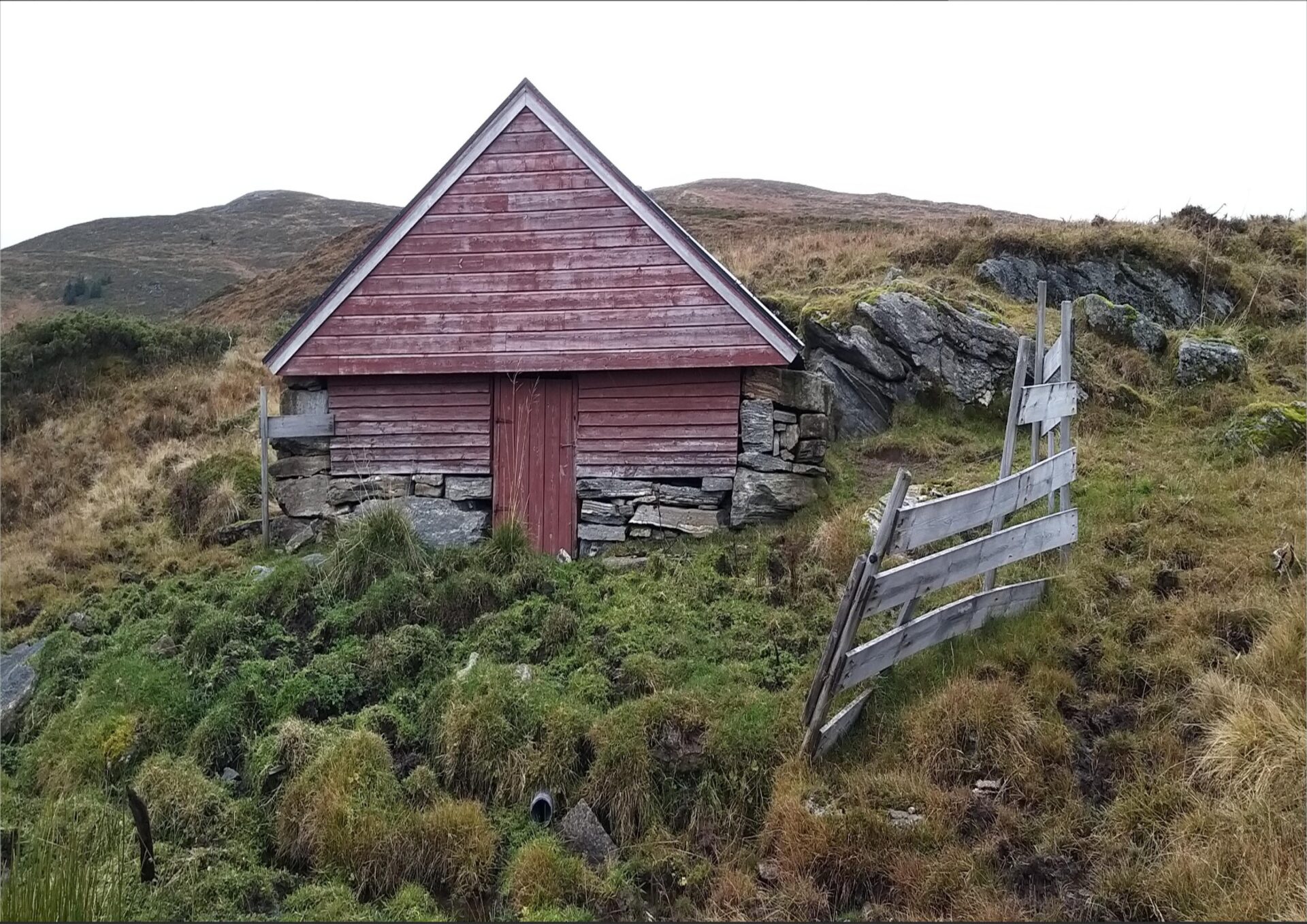 BeskrivingSiste fjøset som var i bruk . Fjøsdøra er den originale frå 1928.