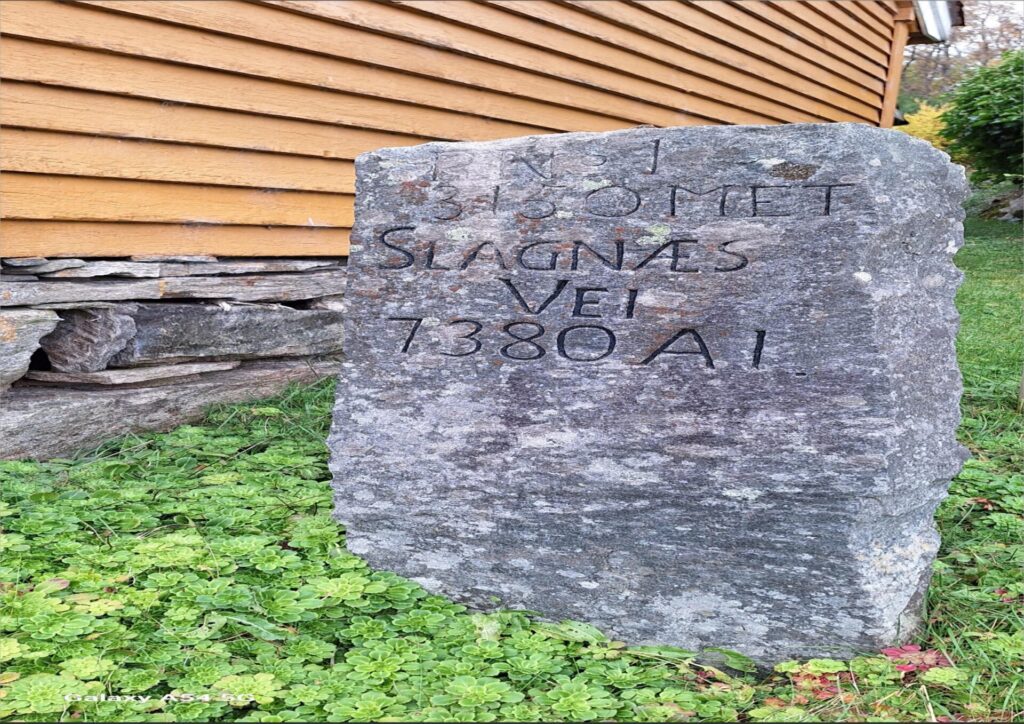 | Beskriving | Liten bautastein som angir avstandar langs vegen. RNo 1 3150 MET SLAGNÆS VEI 7380 Al (4650 meter). |