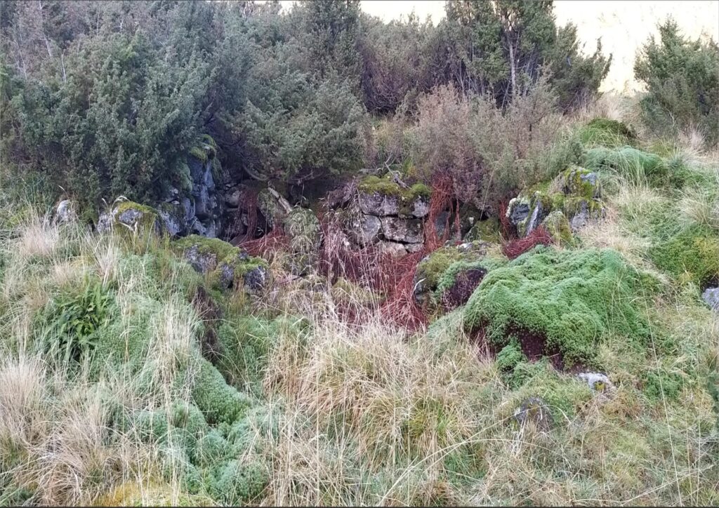 | Beskriving | Muren er graven delvis inn i terrenget. Ca 2 x 3 m. Kanskje brukt til torvhytte. |